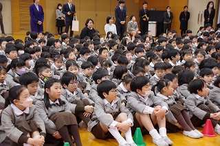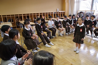 講堂に1年生から5年生の児童、教職員が集い、修了式を行いました。