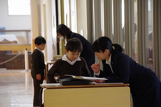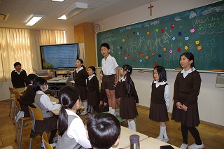 共同祈願は2,4,5年生の代表児童が行い、皆で心をあわせて祈りました。もうすぐイースター(復活祭)なので、十字架の道行きの祈りもささげました。