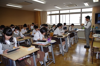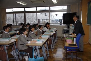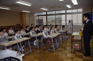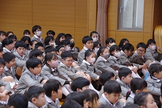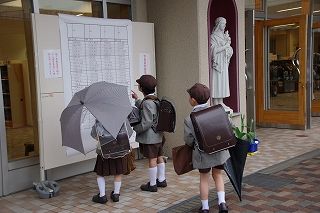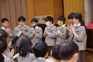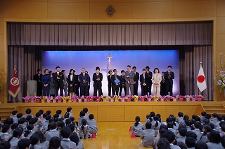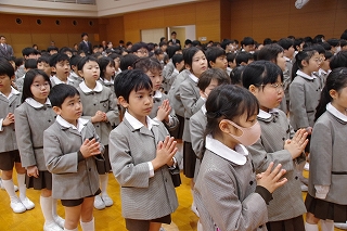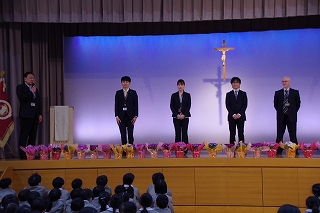お祈りから始業式が始まりました。校歌を斉唱した後、聖書の朗読を聞きました。