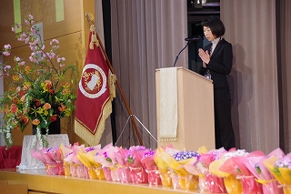 教頭先生からそれぞれの学年の進級報告を聞いた後、新しい先生の紹介がありました。また、教職員の紹介もあらためて行われました。