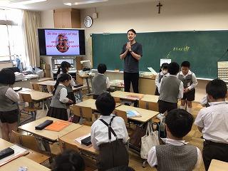 The 5th graders recite “Hail Mary”.