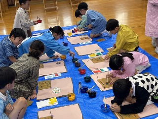 本日、京友禅体験工房 丸益西村屋さんに来ていただき友禅染めの体験をしました。