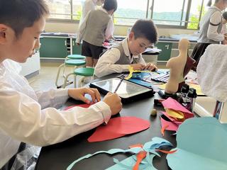 動画や人体模型、インターネットの資料などで得た知識をまとめる活動として、内臓エプロンをつくりました。