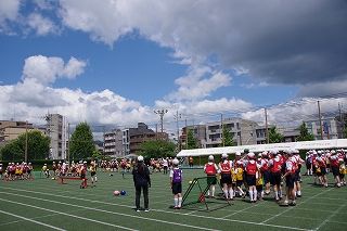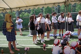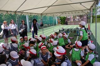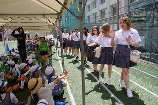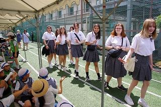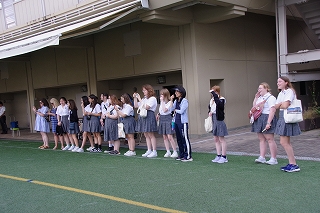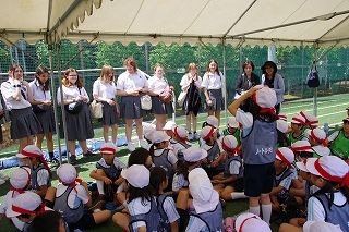 今週、本校ではスポーツフェスティバル本番を迎えます。全校で予行練習を行っているところにセントルイスからお客さまが来られました。