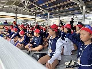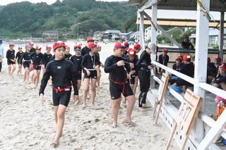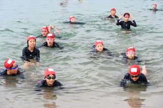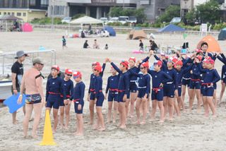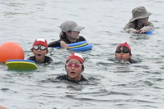2日目は雨上がりの曇り空で砂浜も熱くなく、暑さの心配をせずに、全グループが2回ずつ泳ぐことができました。