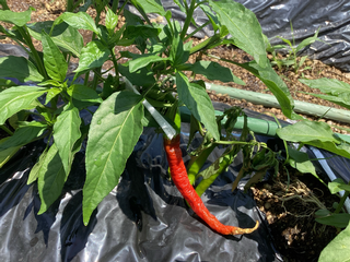 夏休みが明け、畑に行ってみると、トウガラシは真っ赤になっていました。見るからに辛そうな色…。教室に戻って赤くなったトウガラシが辛いかどうかをインターネットで調べてみると、「辛くありません」と書いてありました。何人かの子が持ち帰って、お家で調理してもらったようです。「辛くなかった~!」との報告を聞いて一安心。もう少し収穫を楽しめそうですので、しっかり学習のまとめをしたいと思います。