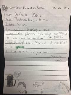 The 4th, 5th and 6th graders wrote letters to our sister school, Notre Dame Secondary School in Bandipur, Nepal.