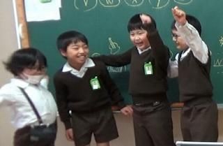 The 3rd graders have been working on the storytelling unit this month. It’s based on Learning by Storytelling method. They read the Japanese folktale “Momotaro” in English and perform the story as a play. They helped each other to recite the dialogue and practice their acting. They also making their original lines and scenes.