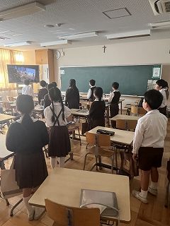 この式典に在校生たちも参列しました。3年生以下は教室でオンラインによる参列でしたが、心を整え、襟を正しく臨席しました。