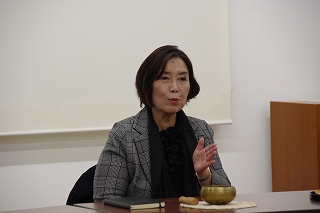 ノートルダム女学院中高でも使っているという、ネパールのシンギングボウル(singing bowl)の音色を聞きながら、アットホームな雰囲気で講演が始まりました。