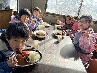 お昼ご飯には雪景色を見ながらカレーを食べたり、雪だるまを作ったりと、京都にいたらなかなかできない経験ができました。
