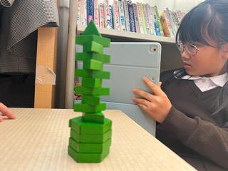 正三角形の敷き詰めを通じて、「どうすれば形が安定するのか」「次はどんな形に挑戦してみようか」と、子どもたち同士で自然と会話が生まれていました。算数の学びが、創造力や協力する楽しさにもつながる時間となりました。