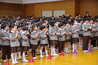 本日、無事今年度の修了式を終えることができました。1年生から5年生までの児童は、それぞれの学年の課程を修了し、次の学年へ進級します。修了式のあと、子どもたちは、一人ひとりの成長が記されている通知表を担任から少し緊張気味に受け取っていました。