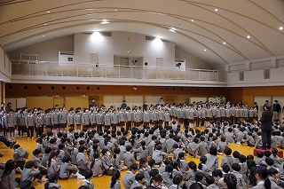 今日は、在校生が6年生に感謝の気持ちを伝える「6年生を送る会」がありました。それぞれの学年が、これまでお世話になった6年生に向けて、メッセージや歌の発表をし、メダルのプレゼントもありました。各学年とも、よく考えた内容とアイデアで、感心しました。6年生はみんな笑顔で、喜んでいることが伝わってきました。
