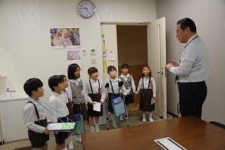 <2年生は1年生と一緒に学校探検をして校内を案内してくれました>