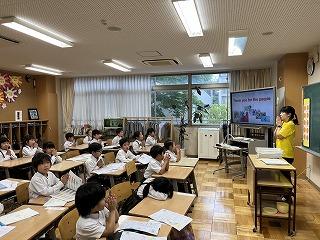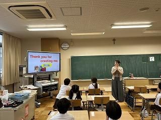 At Notre Dame Elementary School, we have English lessons twice a week from Grade 1 to 6. Besides these lessons, we also have some time in English every day. We call this program English Everyday Program.