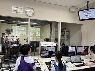 We watch school TV broadcasting in English.