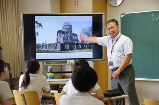 来月、平和学習のため広島に行く5年生に、原爆の悲劇を通して、命の尊さや平和の意味について考える時間を取りました。資料や映像を見ながら、当時の人々がどんな思いで生き抜いてきたのか、今を生きる私たちが何を受け継ぐべきかを考えました。また、1981年、広島を訪問した教皇ヨハネ・パウロ2世の広島平和アピールについても学びました。「戦争は人間のしわざです。戦争は人間の生命の破壊です。戦争は死です」という言葉は、当時、世界に強烈な印象を与えました。