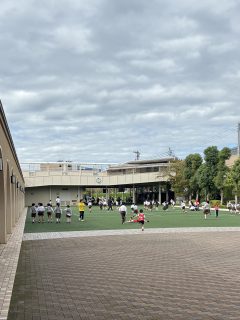 秋が深まり、すっかり涼しくなりました。子どもたちは元気にグラウンドを駆け回っています。