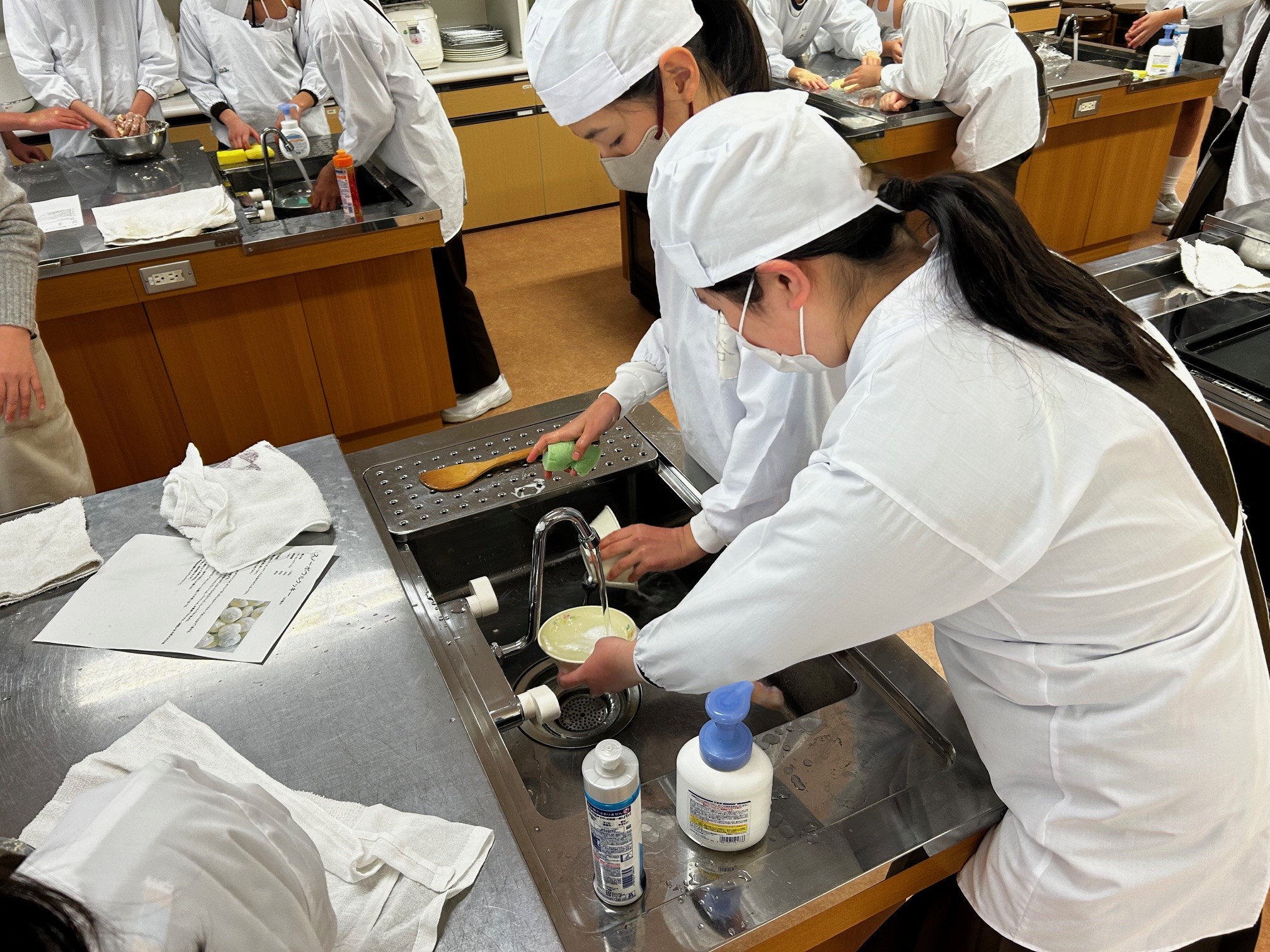 焼き上げの時間が近づくと、調理室はオーブンから溢れ出す甘く香ばしい香りに包まれます。焼き上がったクッキーに粉砂糖をまぶし、真っ白な雪玉のような愛らしい姿に仕上がると、子どもたちからは思わず「おいしそう!」「今すぐ食べたい!」という歓声が上がりました。