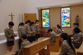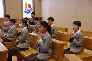 今週の月曜日、6年生にとって小学校最後となる宗教の授業が、聖堂で静かに行われました。宗教担当者に加え、担任の先生と私も参加し、子どもたちの成長を見守りながら特別な時間を過ごしました。